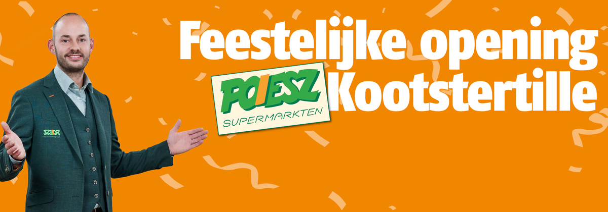 Op vrijdag 14 november openen we onze nieuwe Poiesz supermarkt in Kootstertille aan Pastoriepad 1. Een nieuwe supermarkt in de Poiesz winkelstijl waarin alles erop gericht is om voor u het winkelen zo leuk, makkelijk en voordelig mogelijk te maken.
