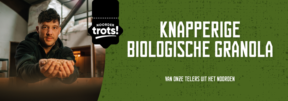 De Noord-Nederlandse bodem blijft ons verrassen. Biologische spelt uit de regio is de basis van de nieuwe Noordertrots granola. Drie varianten bevatten heerlijke ingrediënten en geen toegevoegde suikers. Zo begin je de dag knapperig én verantwoord.
